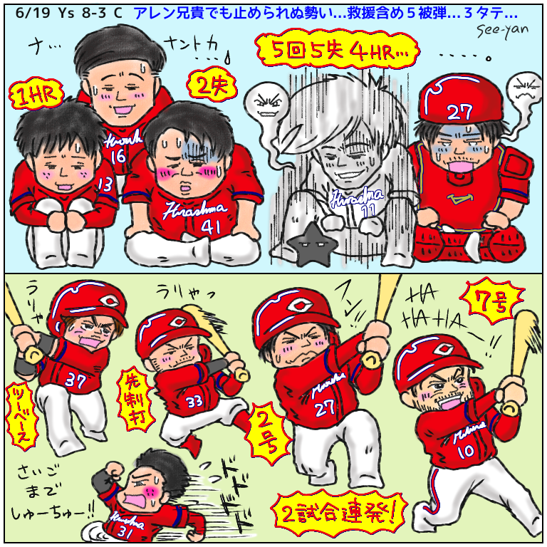 二死から坂倉が内野安打で出塁するも上本は外野フライでゲームセット!